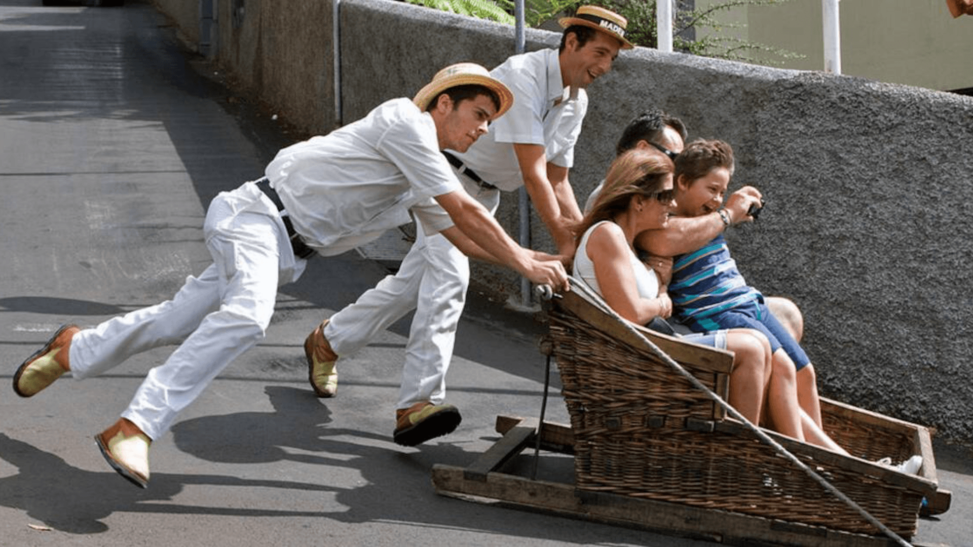 Прокатитесь на канатной дороге Фуншал-Монте, за семь минут она поднимает вас над городом так, что перехватывает дыхание. А обратно можно спуститься на знаменитых плетёных санях: водители в белом толкают вас по дороге с холма — это забавный аттракцион, от которого никто не отказывается.